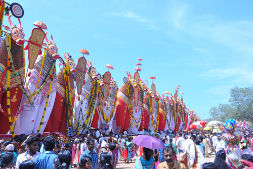 "Irupathattam onam"(28th day of Onam followed by Thiruvonam) is likewise celebrated. It is also the celebration of dairy cattle. In this celebration, enormous "Eduppu Kala" (colossal icons of bull made of cloth & hay) are made. They are then pulled on goliath wheels to the Oachira Temple from the site (their on kara’s) where they are made. Typically there are around 152 such structures. It is the greatest celebration in "Onattu Kara" which is a territory of a couple of square miles.